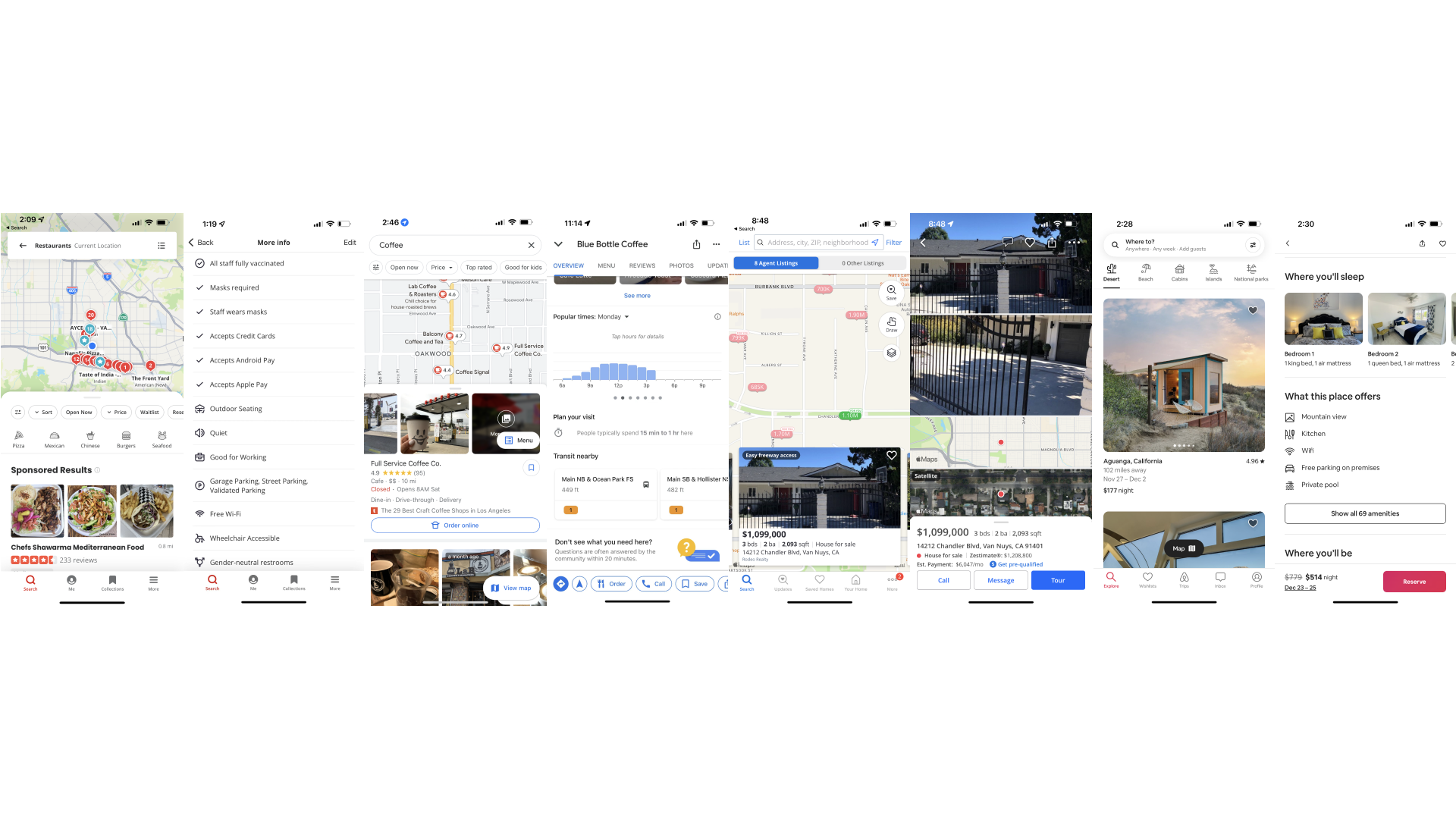 Based on the interview, the main method of looking for a remote work place among users now is simply by using google maps. I looked at Yelp, Google Maps, Zillow and Airbnb to see how their search and filter function works to gather inspiration.