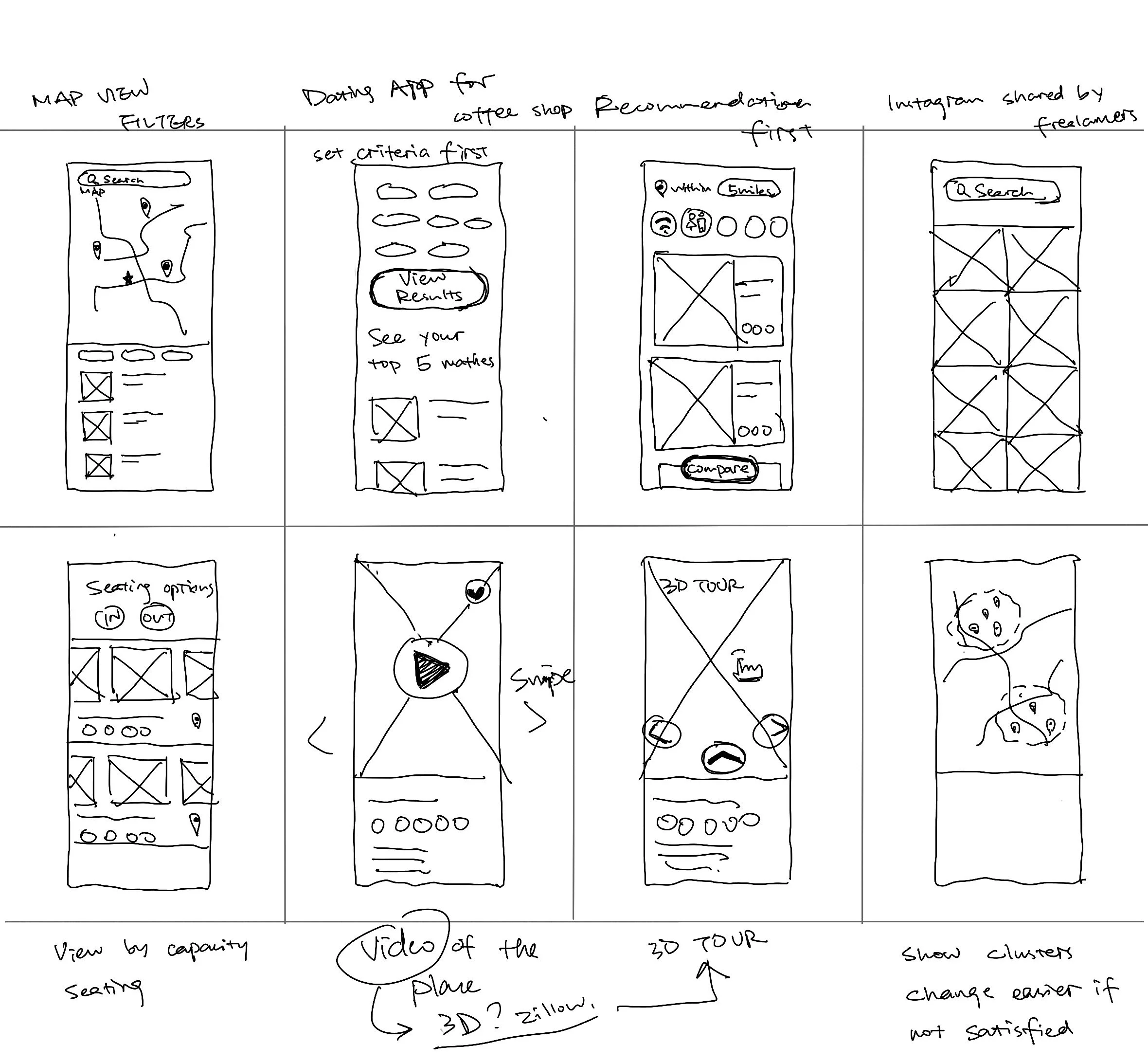 I then did the Crazy 8’s study to quickly generate different ideas.